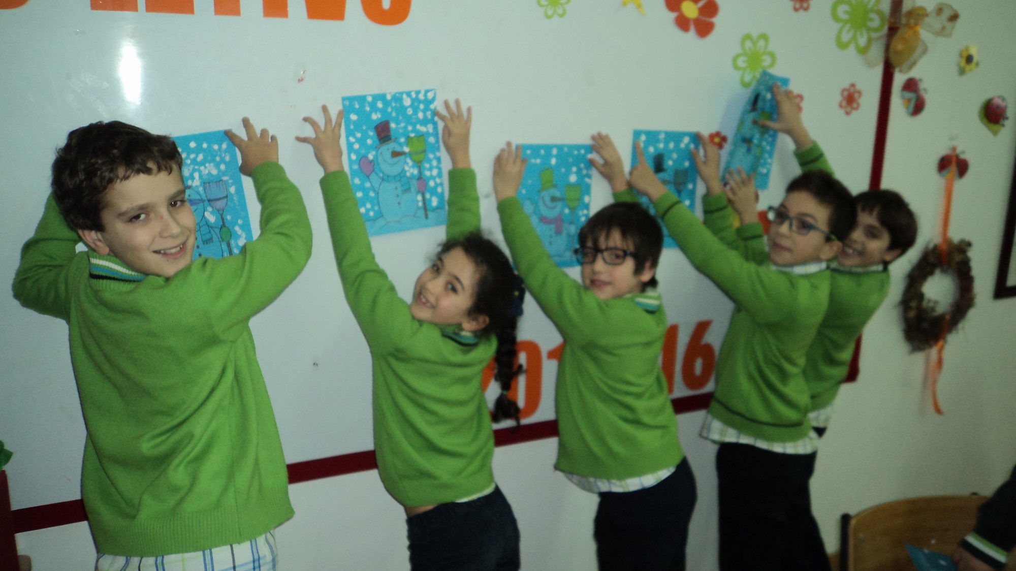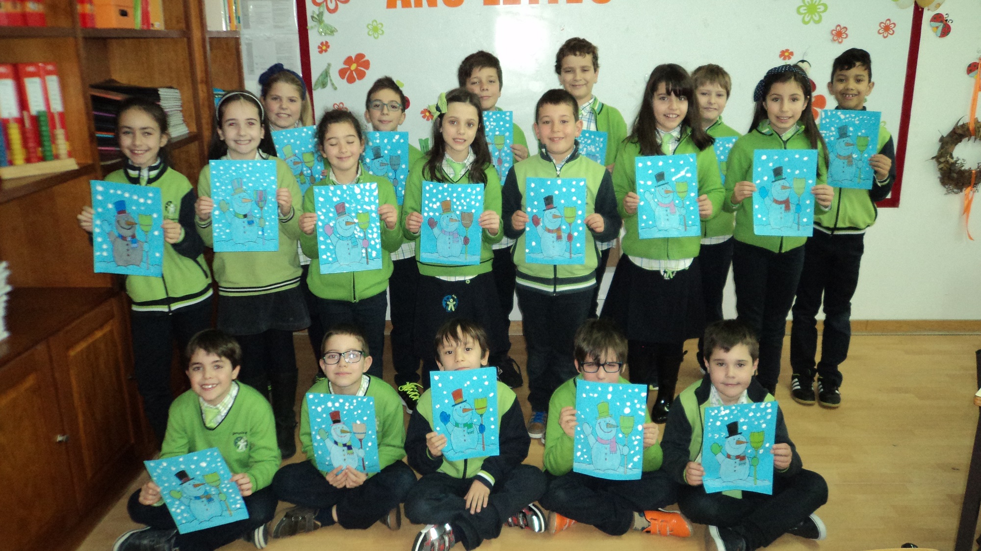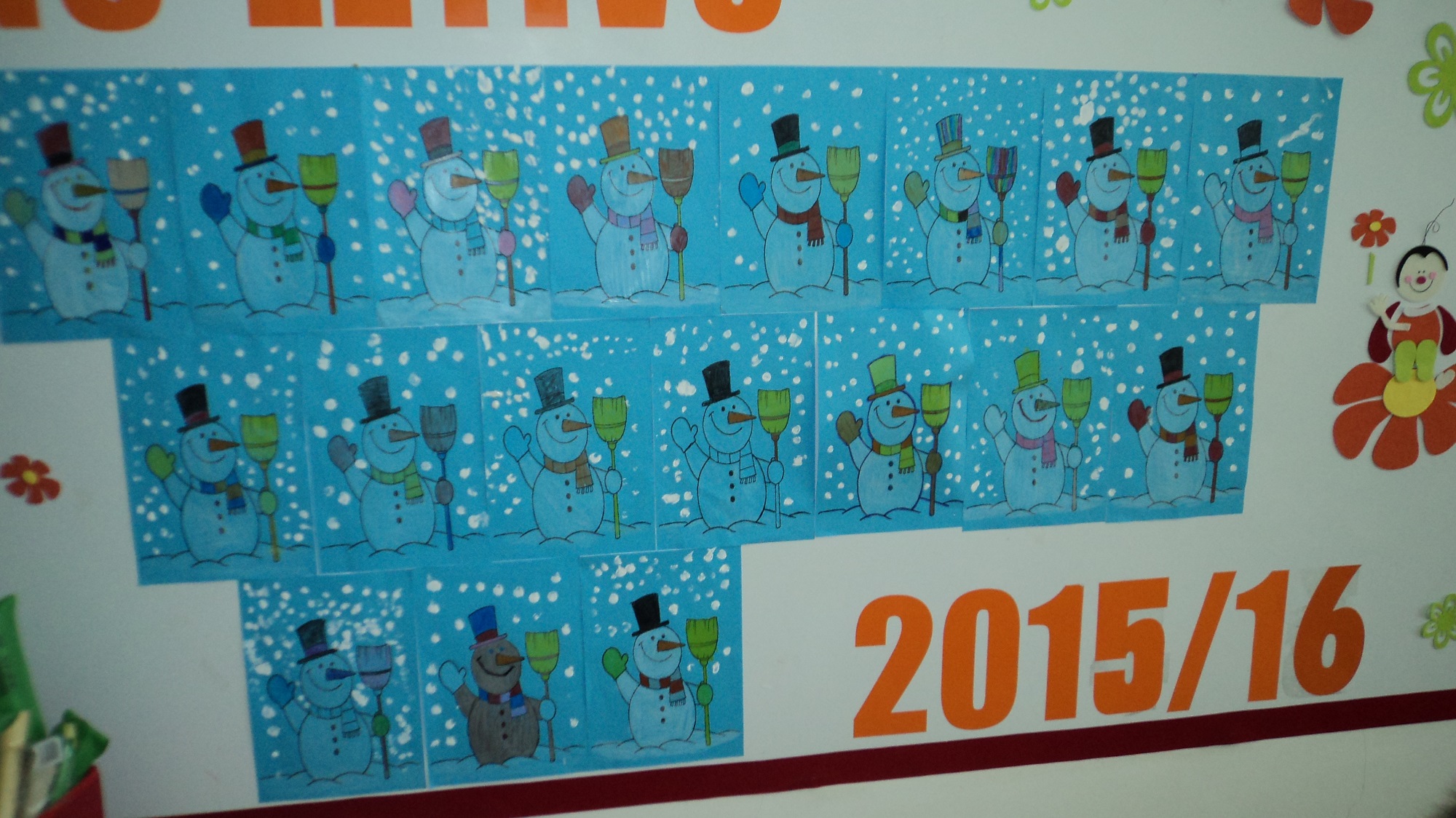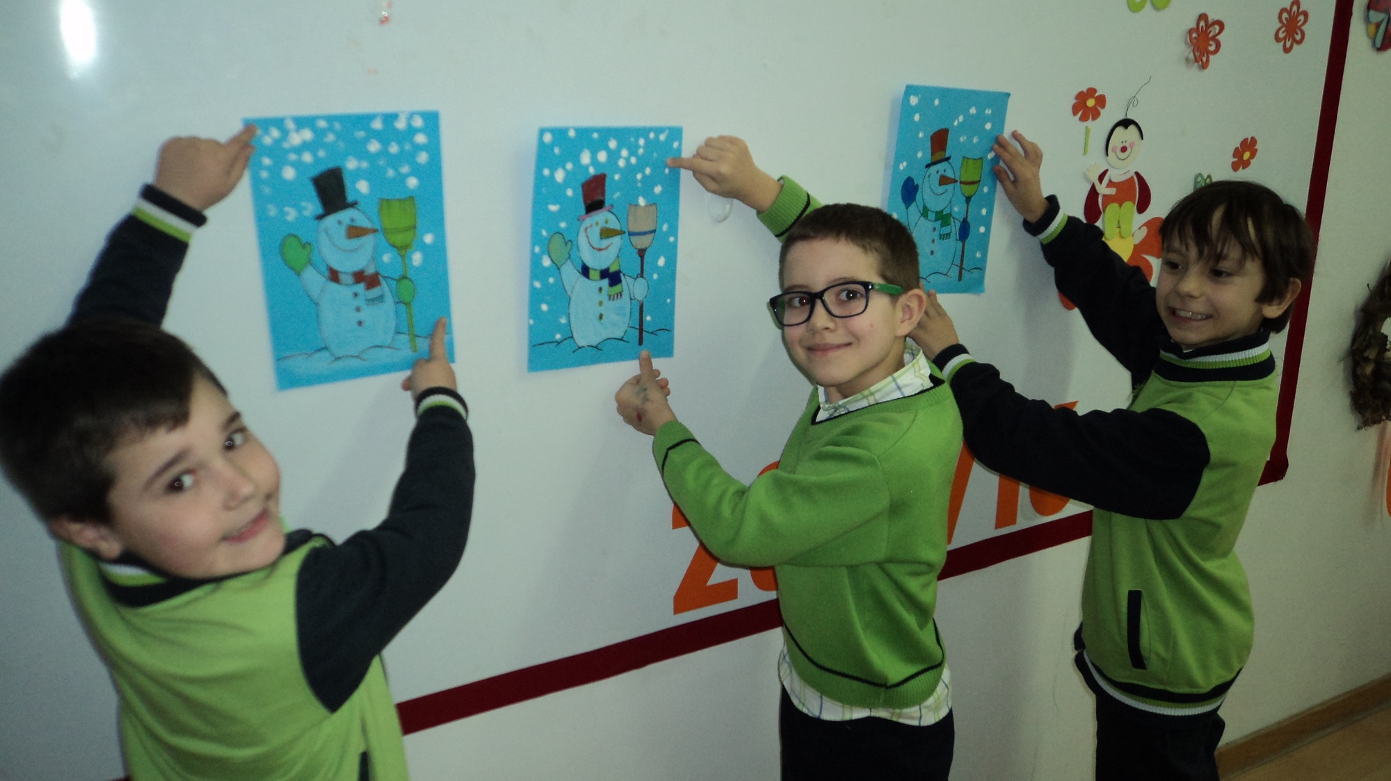 O inverno já chegou e a turma B, do terceiro ano, decorou o seu painel com bonecos de neve muito divertidos e elaborou um belo sabonete.