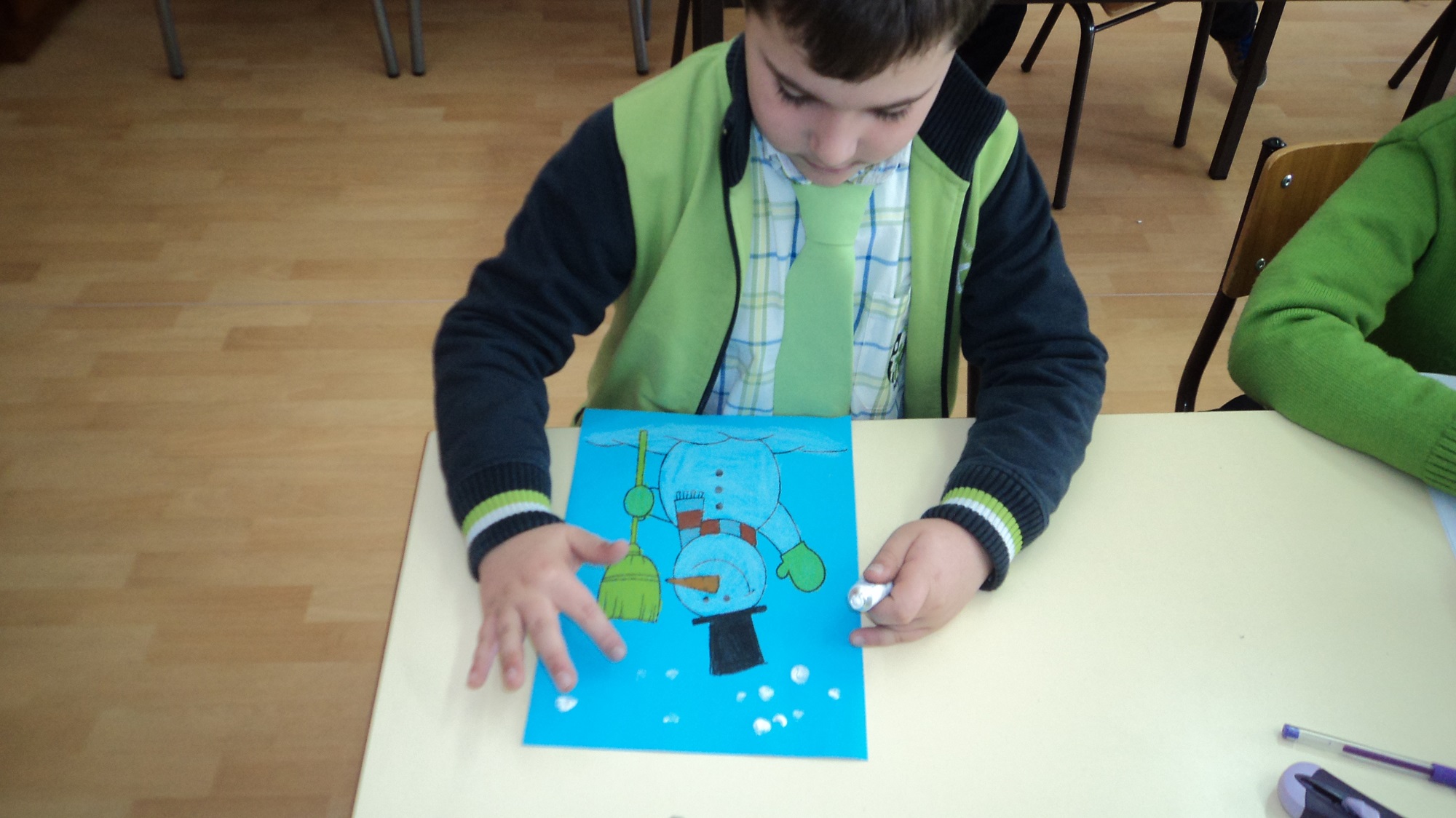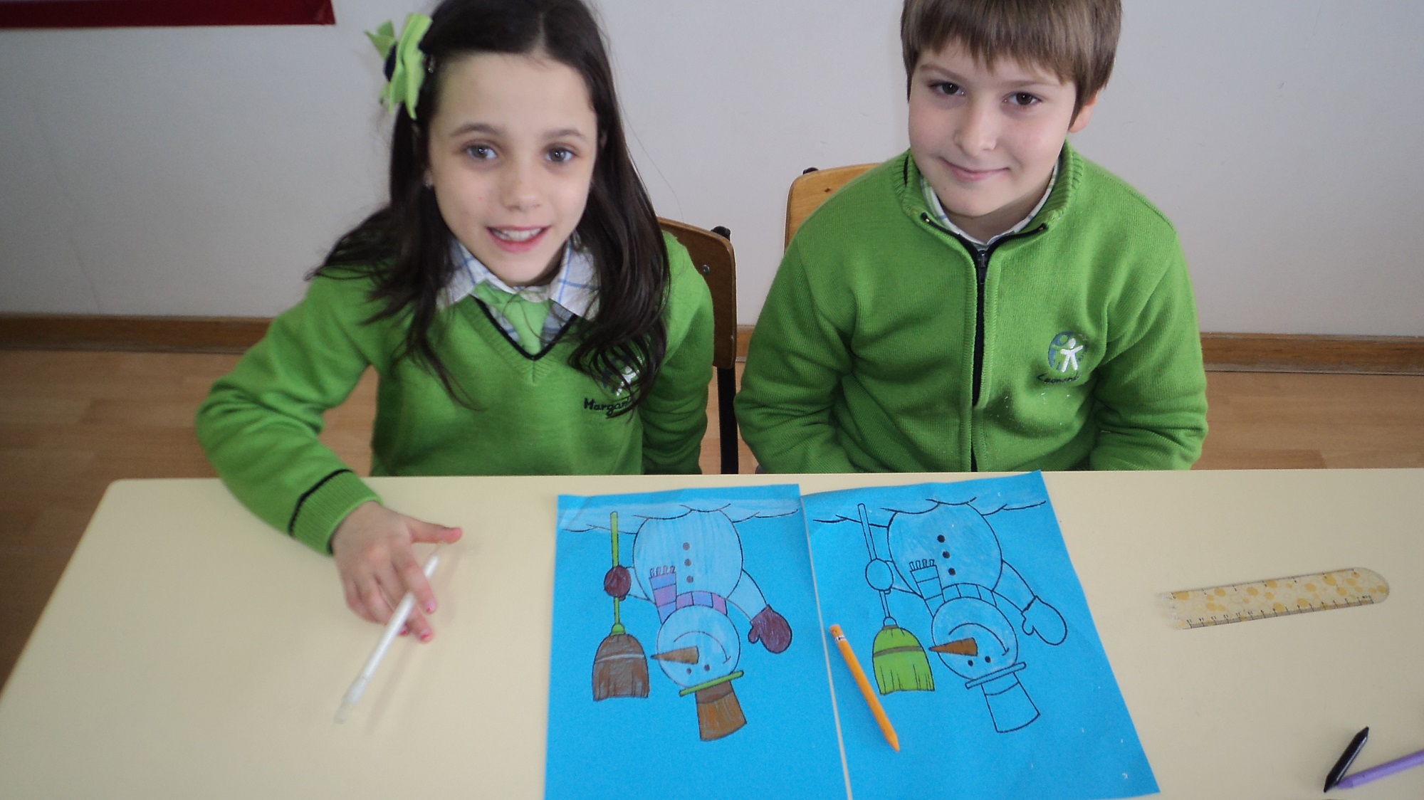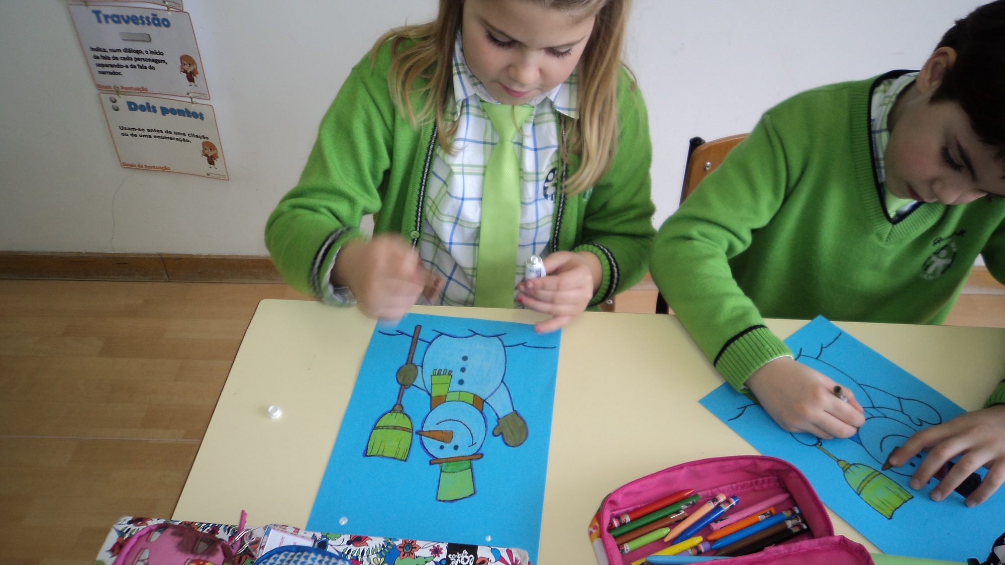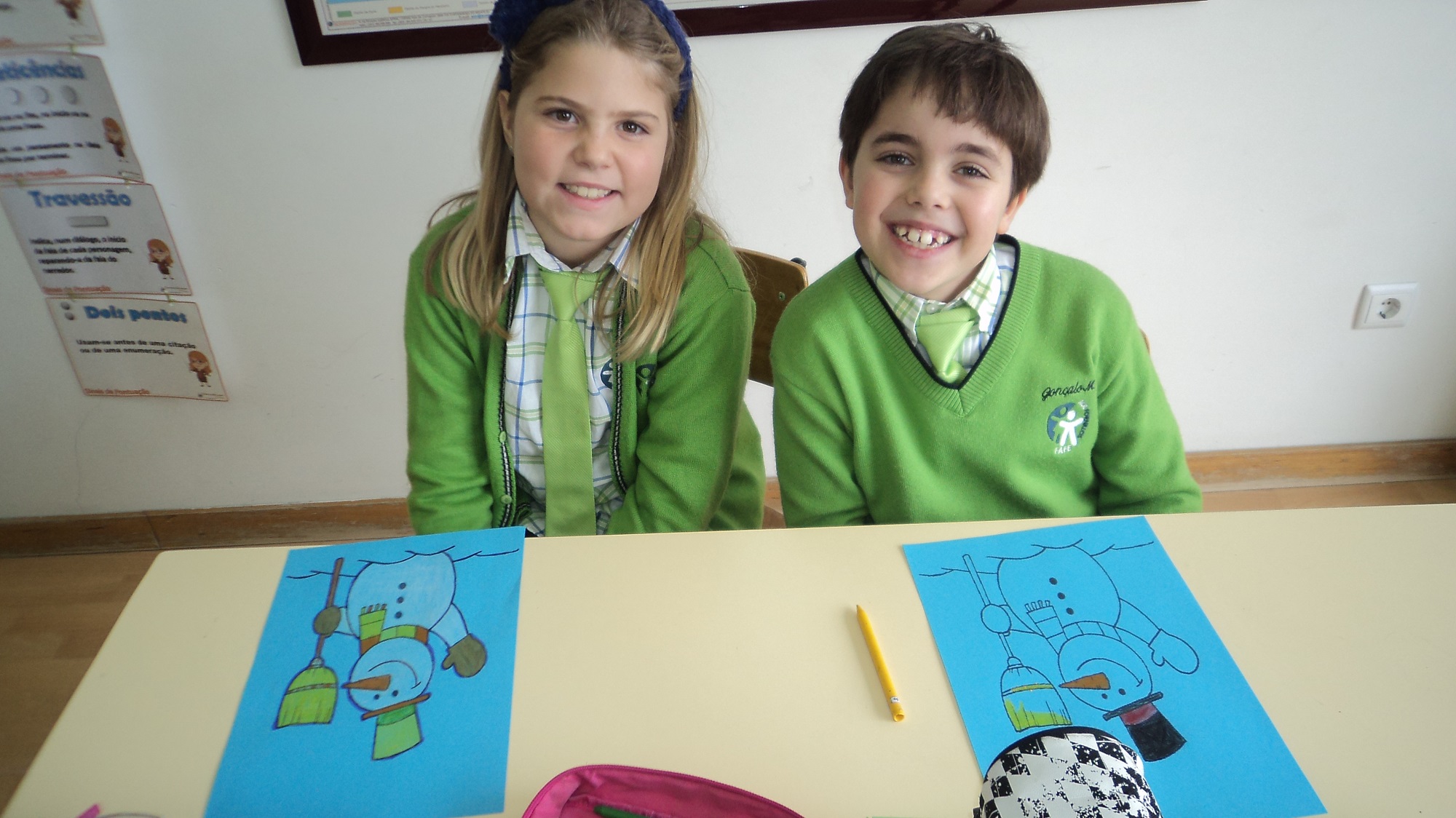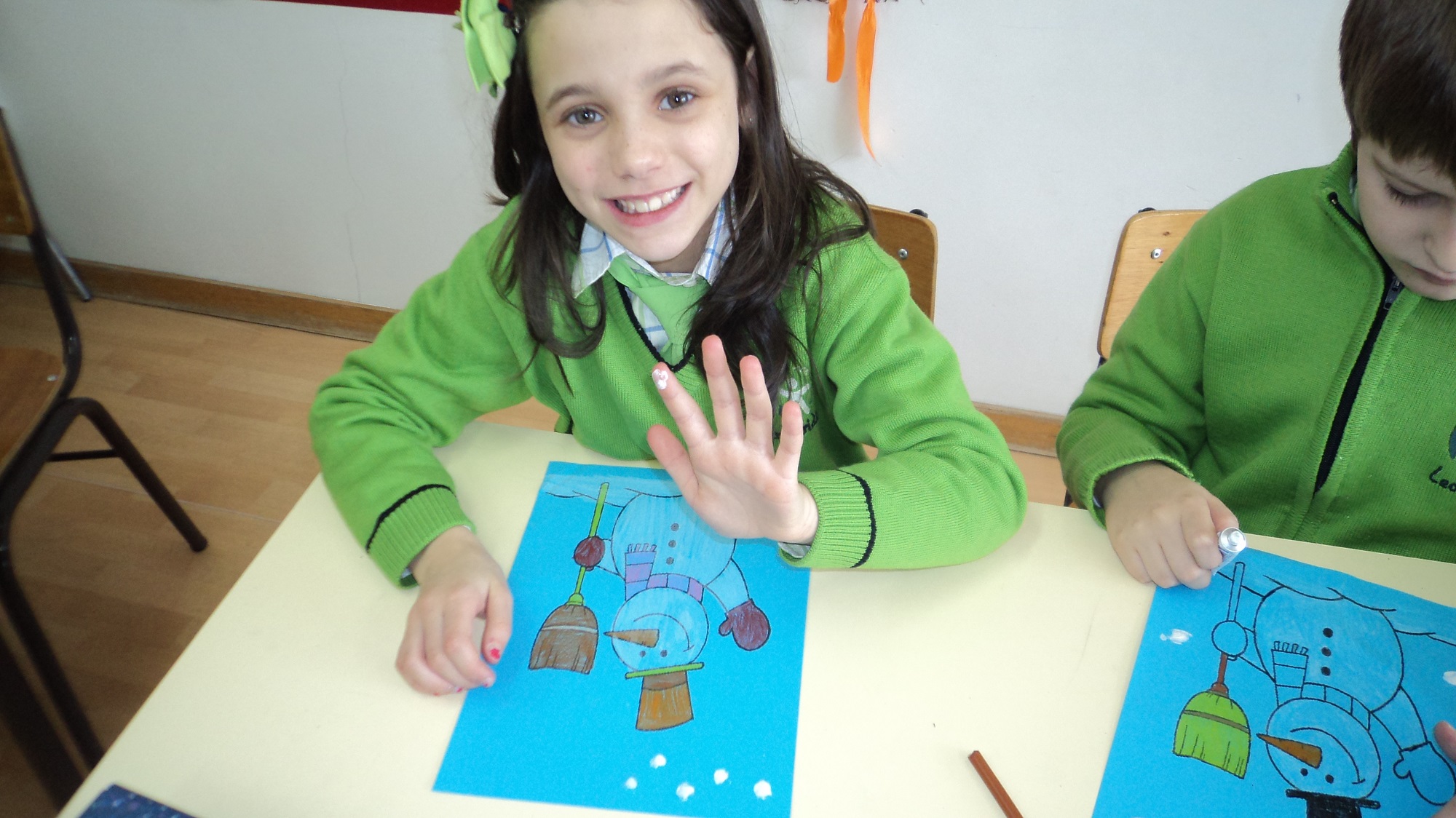 O inverno já chegou e a turma B, do terceiro ano, decorou o seu painel com bonecos de neve muito divertidos e elaborou um belo sabonete.