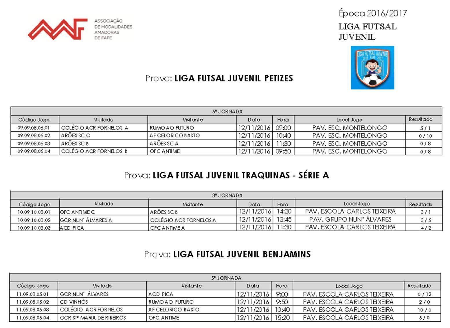 Decorreu este sábado mais uma jornada a contar para a Liga de Futsal de Fafe 2016/2017 com a realização de quatro jogos no que às nossas equipas diz respeito nos escalões Petizes, Traquinas (Série – A) e Benjamins!