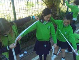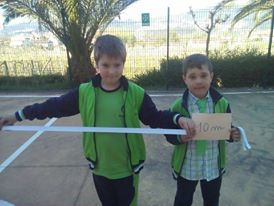 Hoje foi dia de explorar as medidas de comprimento. Com o nosso metro fizemos várias medições, na sala de aula e também no recreio. Foi uma manhã muito divertida e enriquecedora.
