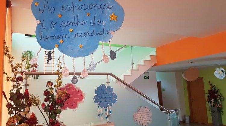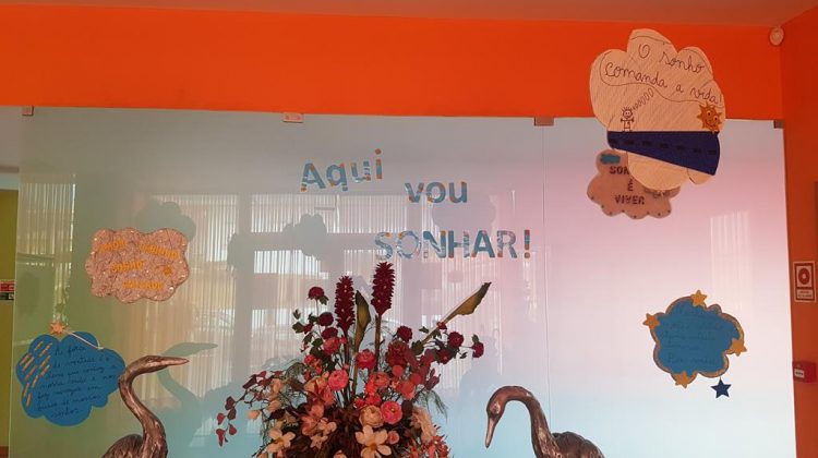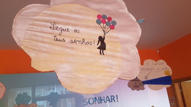 Nós, alunos e professores do 1º Ciclo da ACR de Fornelos, não poderíamos ficar indiferentes a este acontecimento, daí decoramos a nossa entrada principal com mensagens em nuvens alusivas ao tema e coreografamos o NOSSO SONHO através do hino oficial da Instituição.