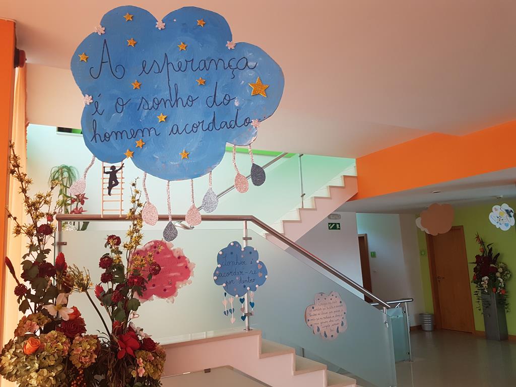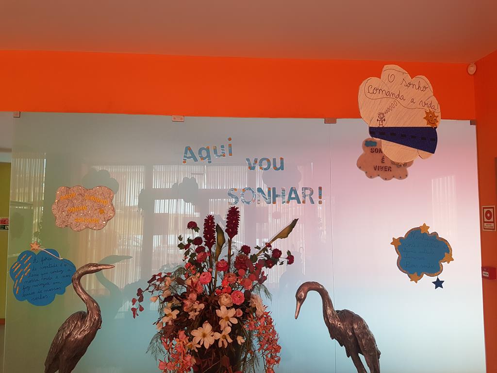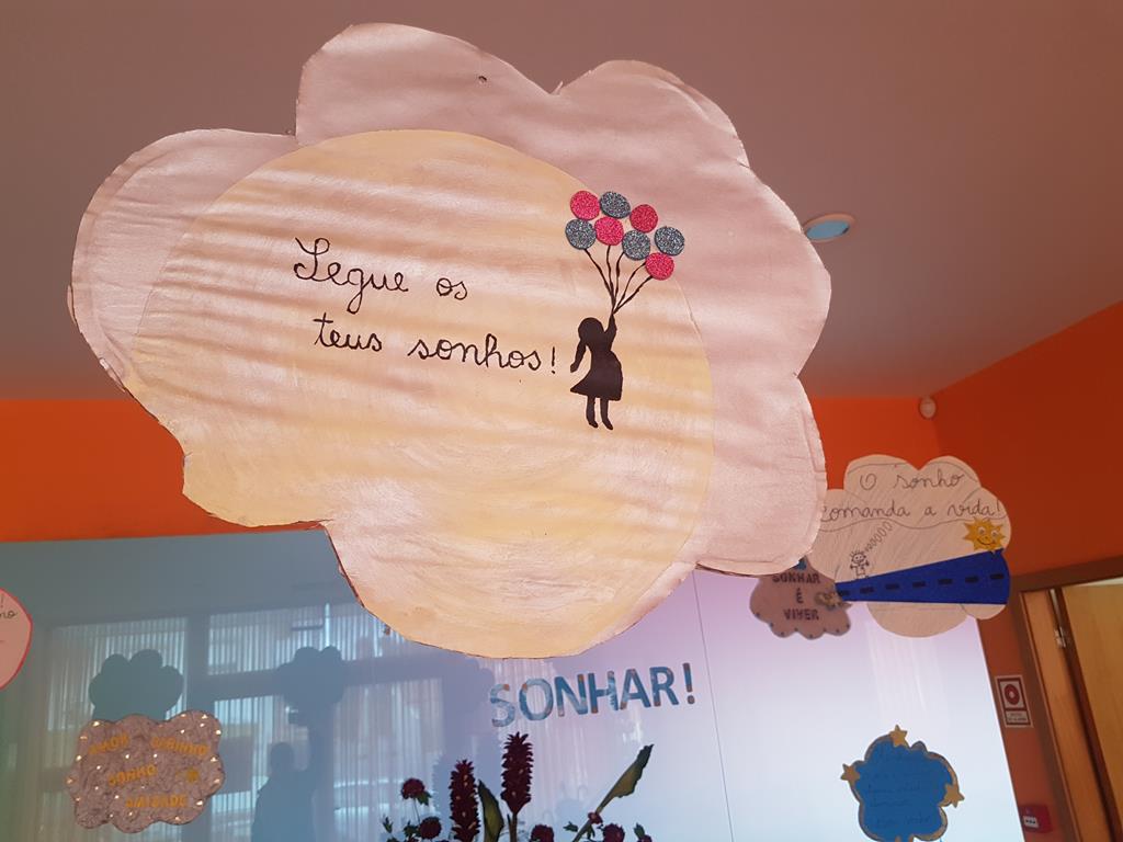 Nós, alunos e professores do 1º Ciclo da ACR de Fornelos, não poderíamos ficar indiferentes a este acontecimento, daí decoramos a nossa entrada principal com mensagens em nuvens alusivas ao tema e coreografamos o NOSSO SONHO através do hino oficial da Instituição.