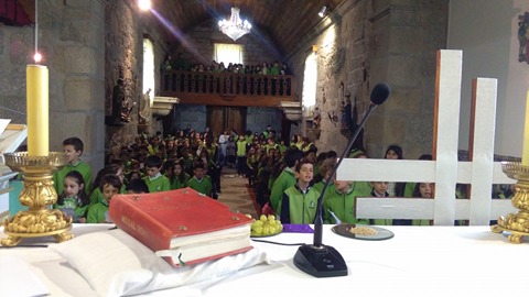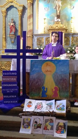 A eucarística decorreu num ambiente festivo e ao mesmo tempo introspetivo, preparando-se a chegada da grande festa da Páscoa. As crianças animaram a celebração com a preparação das leituras e de um ofertório solene, onde apresentaram como dons: sementes, folhas, flores e frutos. Estes representavam símbolos da vida nova Pascal que tanto esperamos, descobertos na graça do perdão e do amor que recebemos de Jesus. Os cânticos foram entoados de forma entusiasta por todas as crianças, auxiliadas pelo grupo coral da nossa instituição.