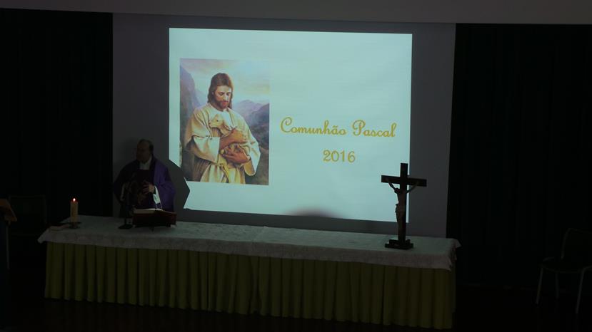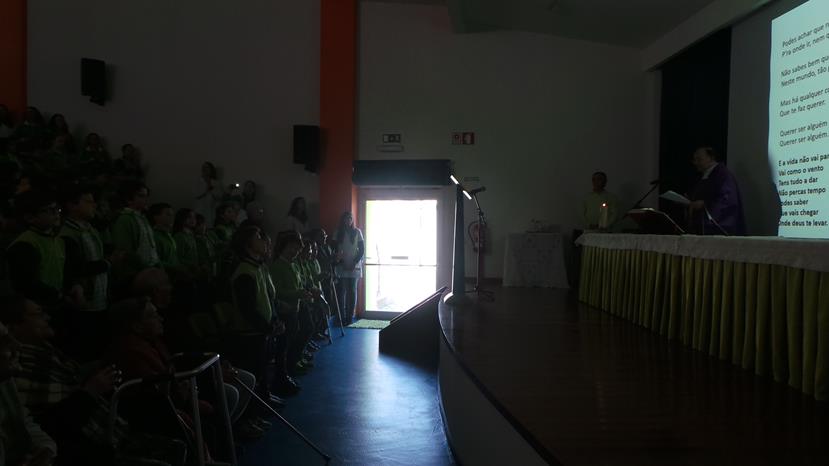 A celebração da Eucaristia foi solenizada pelo senhor padre Delfim e contou com a participação dos utentes do Lar, dos alunos do 1.º ciclo e do 6.º ano. Os cânticos e as leituras ficaram ao encargo dos alunos nos quais se empenharam muito, abrilhantando a missa. O senhor padre destacou a postura de interesse de todos os alunos.