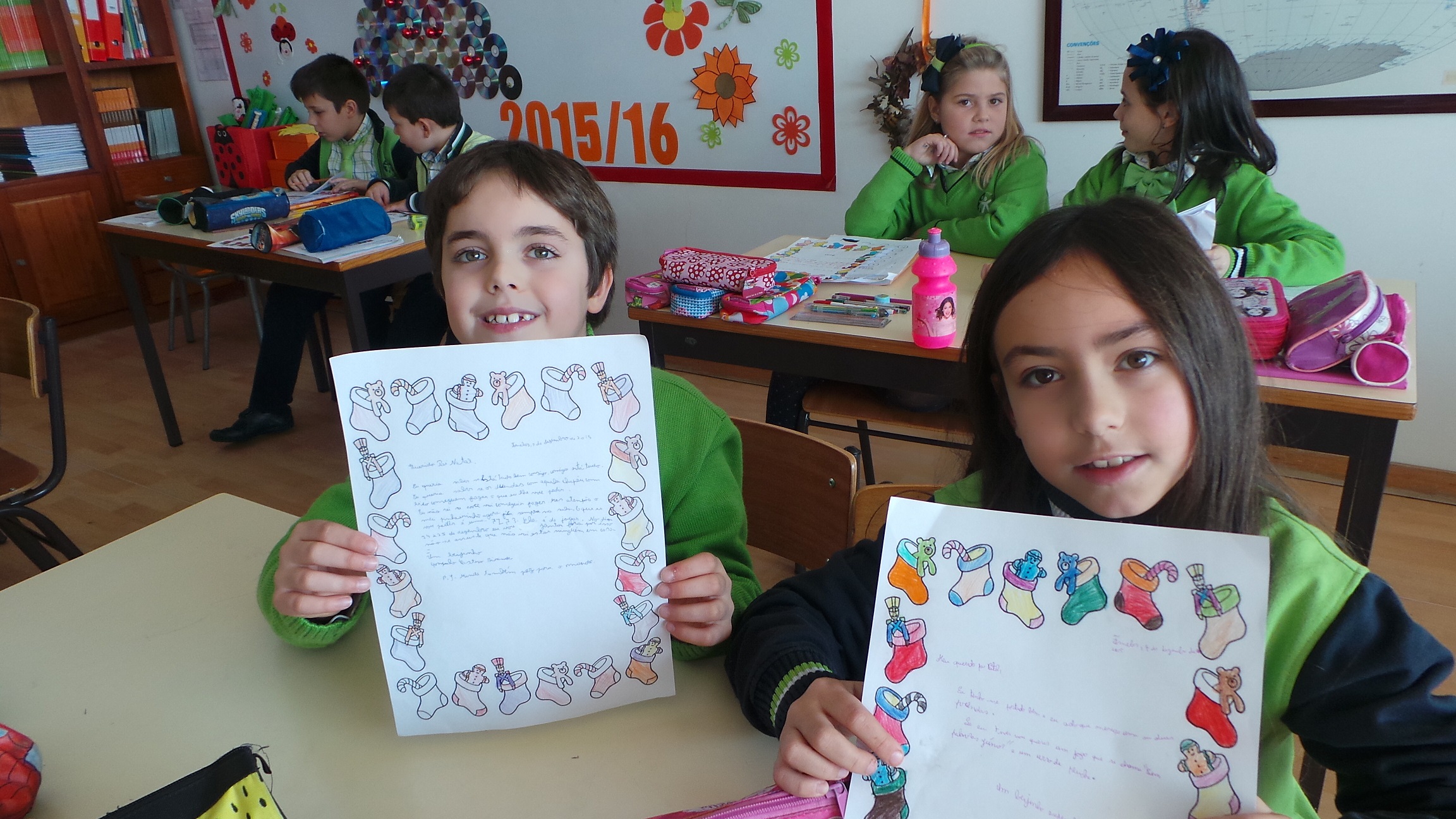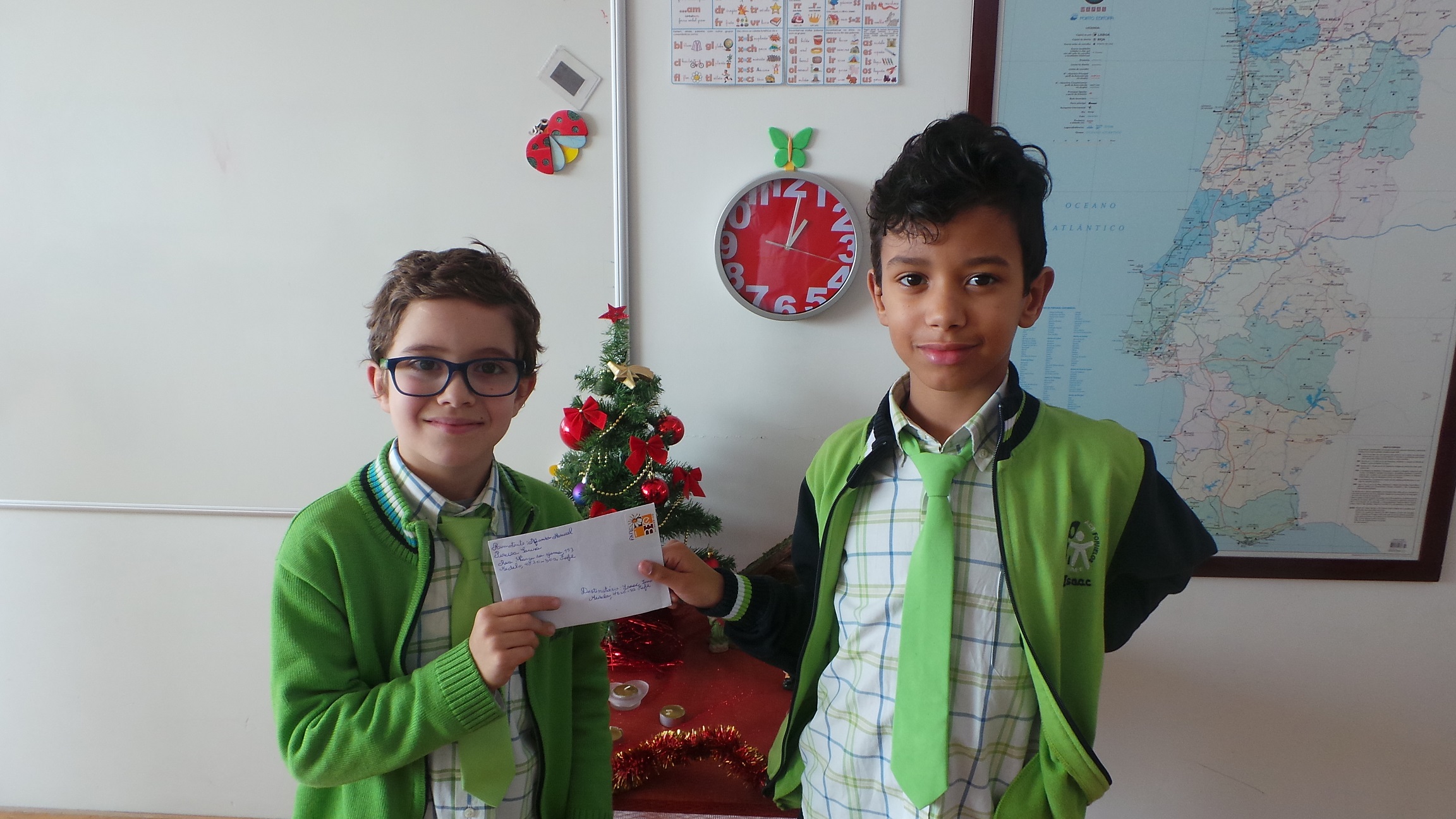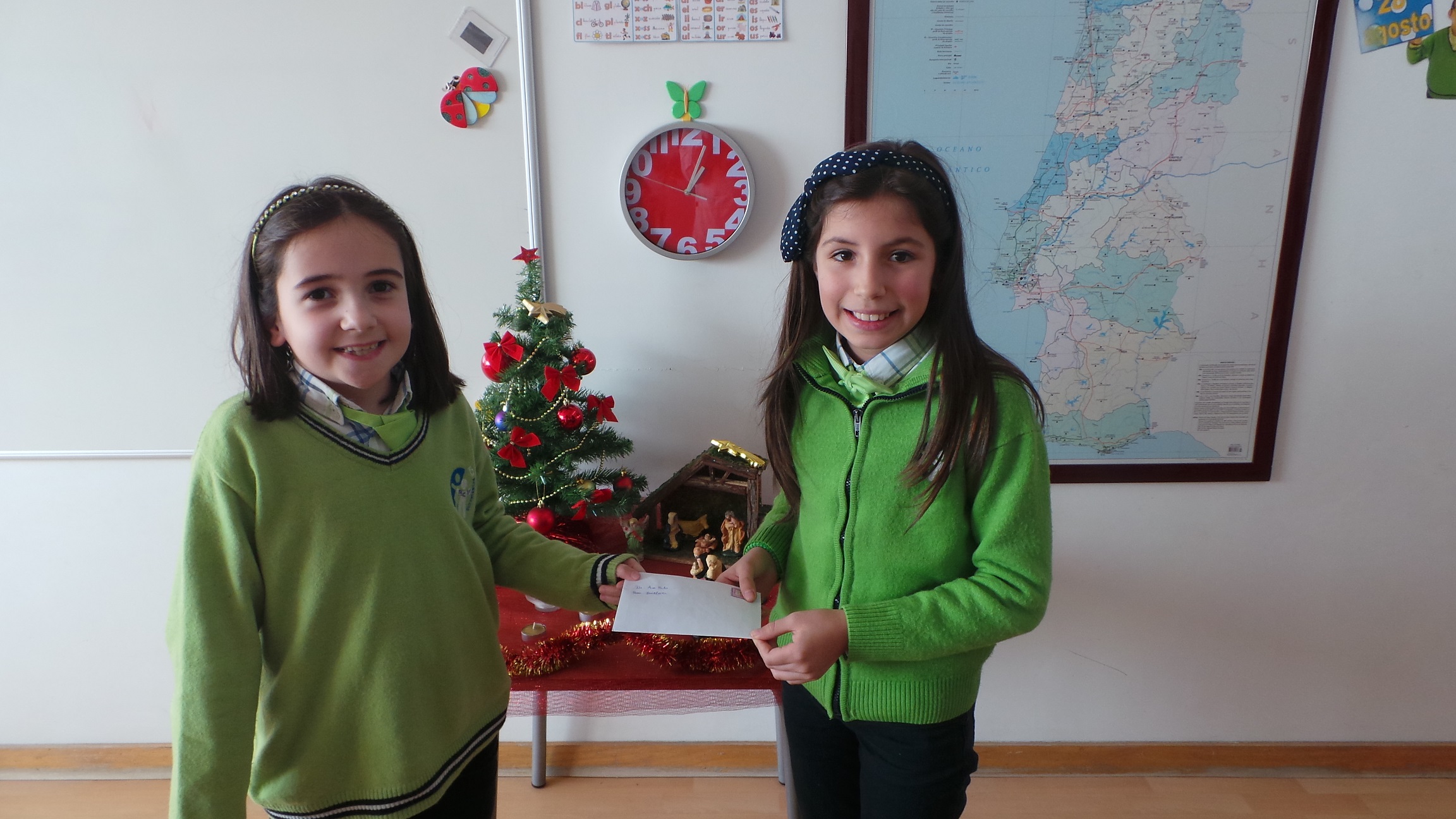 Para promover a escrita de diferentes tipos de texto, em especial a carta, os alunos foram desafiados a escrever a sua carta ao Pai Natal e também uma carta para um dos colegas da turma.