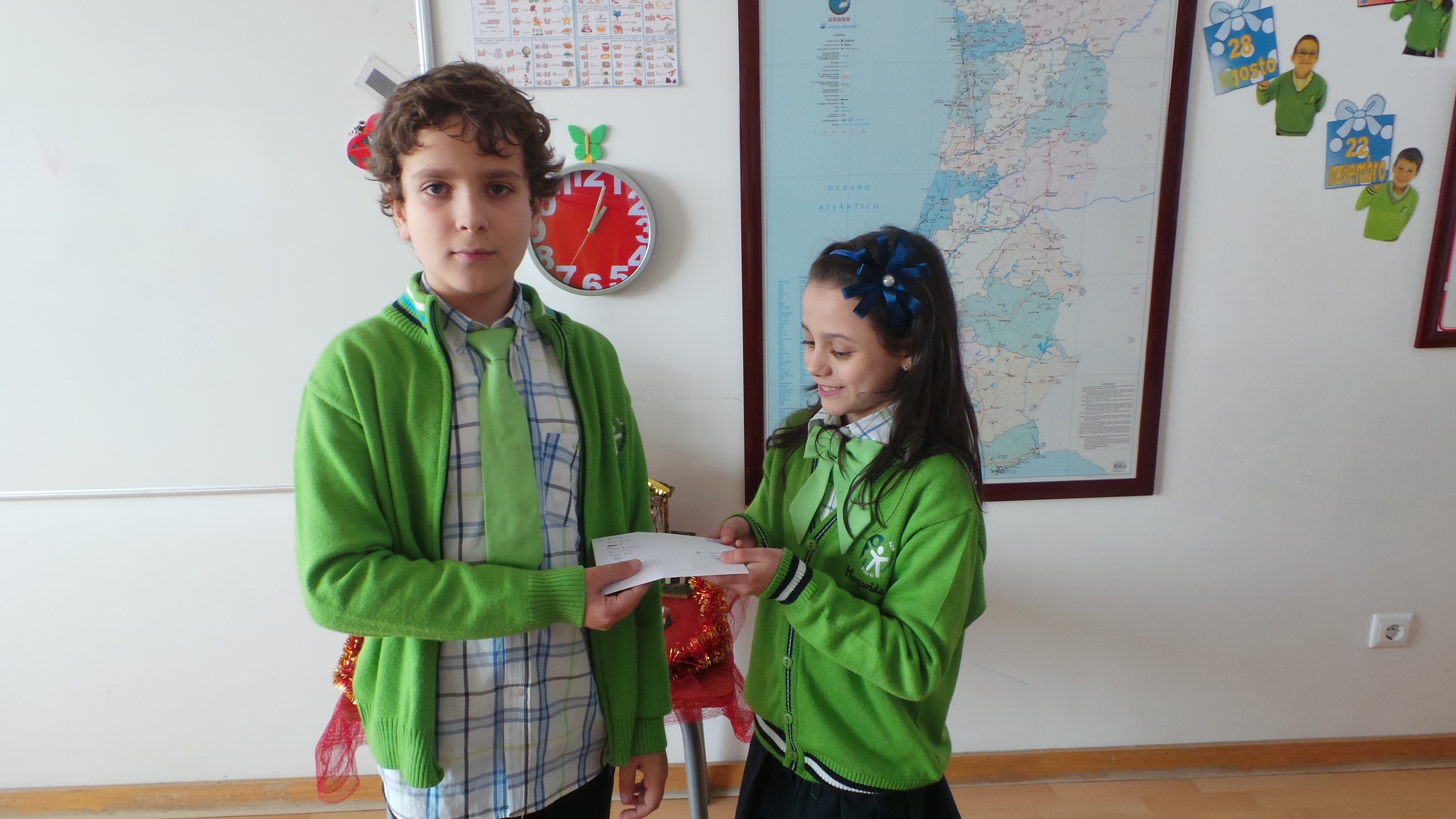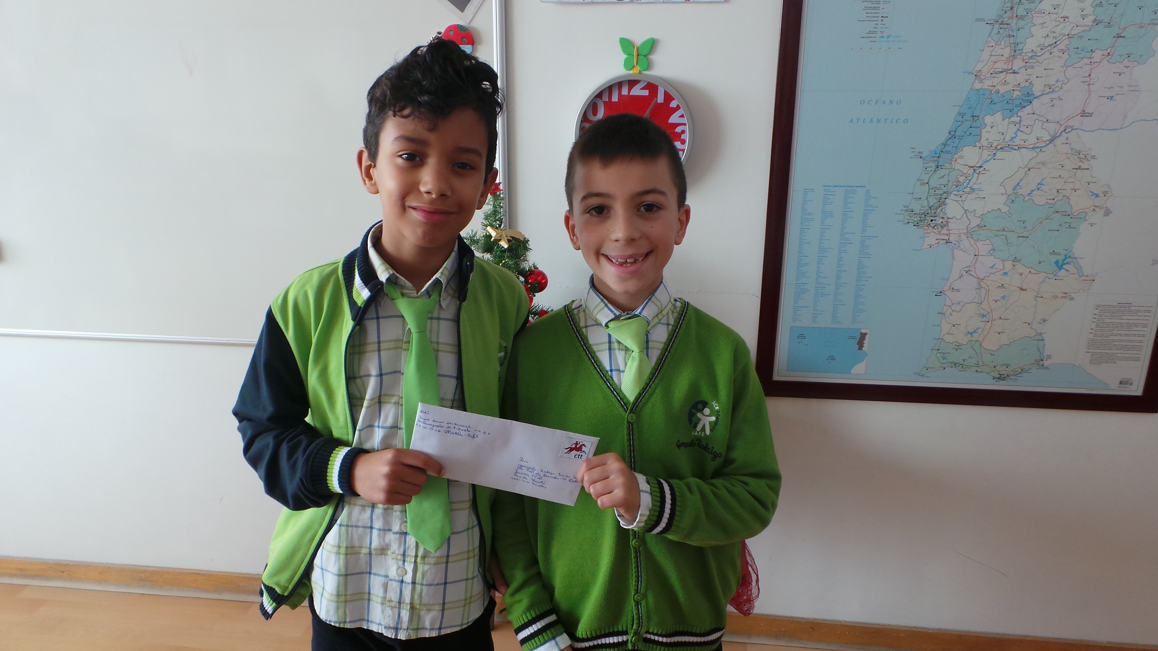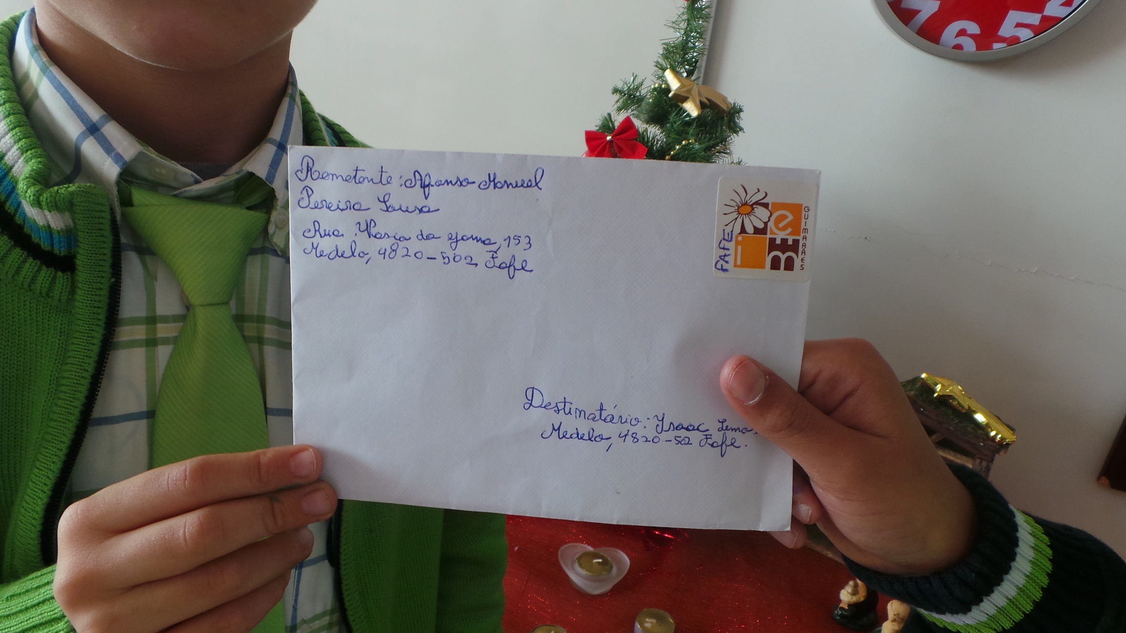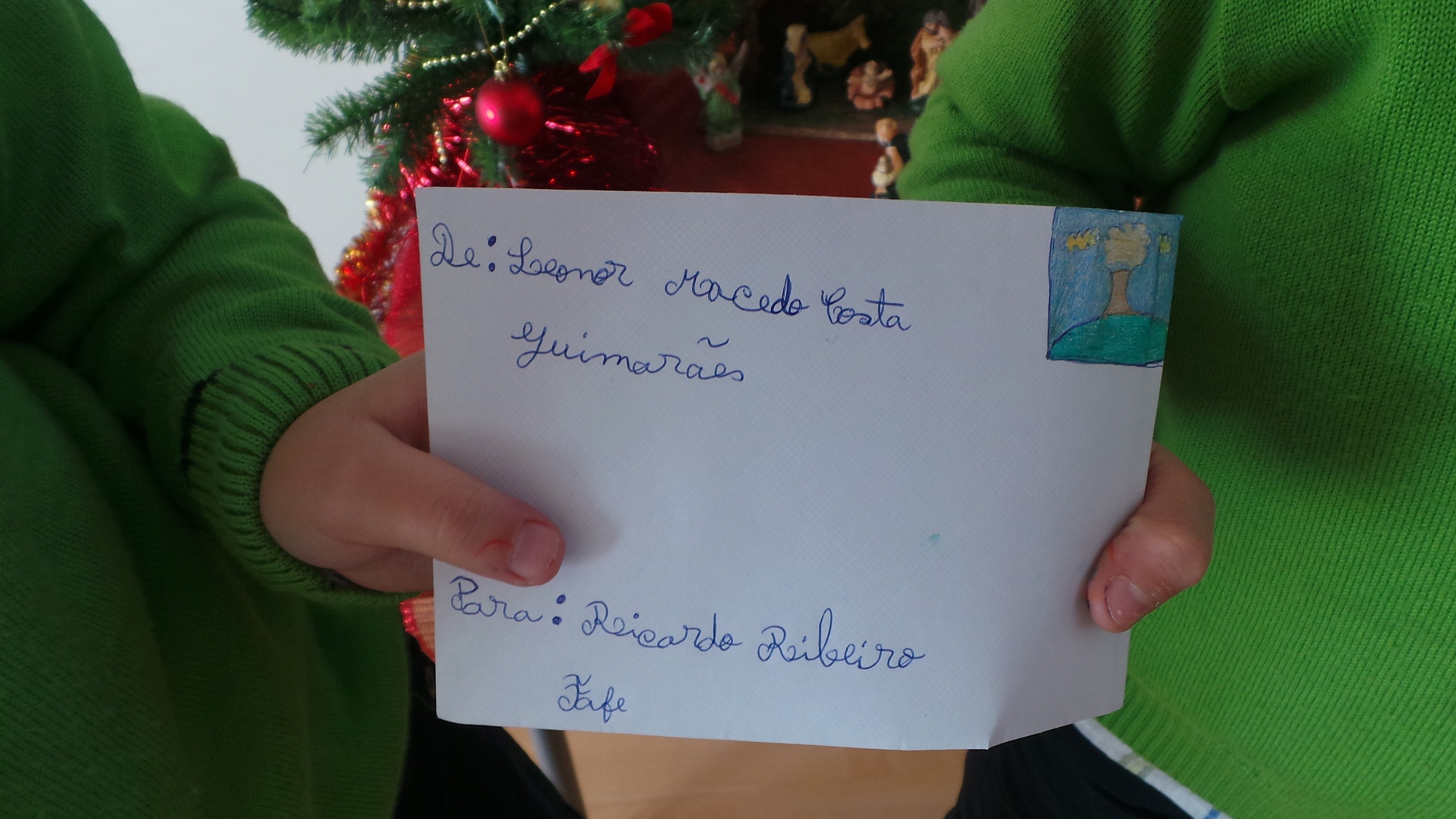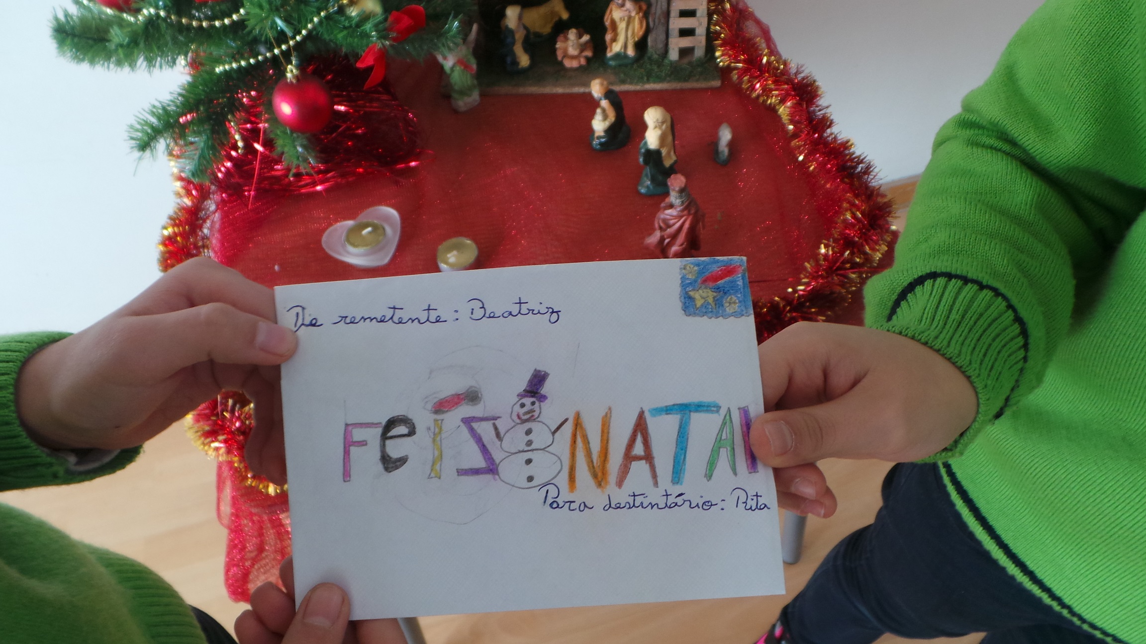 As crianças adoraram escrever os seus pedidos ao Pai Natal que leram para a turma. Inspirados por esta atividade, sugeriu-se a escrita de cartas para os colegas. Assim, realizou-se um sorteio e cada um escreveu uma carta para um dos seus amigos. O empenho dos alunos foi notório, bem como o entusiasmo ao entregar a sua carta ao colega.